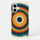 A dramatic retro artwork of a glowing eclipse with bold geometric shapes and vintage contrasts.