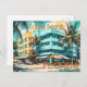 A radiant Florida postcard, capturing the essence of Miami's South Beach, with its sun-soaked retro Art Deco buildings, and swaying palm trees. This Florida postcard is part of a series of postcards created in a post-impressionism art style and is inspired by different locations around the world.