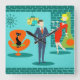 Honey, I'm home! This Retro Space Age Cartoon Couple Wall CLock will have you feeling envious of the cartoon couple on a wall clock! The design features a turquoise background with teal bricks and an olive green, cone fireplace. A sleek, black cat is sitting on a sleek orange chair. There is a teal, starburst wall clock and a two-tier pendant lamp in shades of yellow, blue and black. Front and centre, there is a distinguished, martini-swilling businessman in a blue suit and orange tie. To his side, his blonde bombshell of a trophy wife is wearing a red wiggle dress and holding a tray of martinis. Va-va-va-voom!