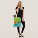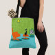 It is said that dogs have owners and cats have staff. The feline on this Retro Space Age Kitty Tote Bag couldn't agree more! The 1960's style, minimalist art design features a sleek, black cat in a mid century modern living room. The sophisticated room prominently features a green, stone wall. The carpet is aqua with teal shadows. The furnishings of the room include a yellow, sputnik light figure, an orange lounge chair with matching footstool and a green television with rabbit ears. The lucky black cat can be seen perched on the footstool in front of the television. Its favourite show is on! On the television screen, we can see a black and white, classic television family solving all of life's problems in a half hour show. This design is purrrfect, if we do say so ourselves.