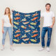 Retro Space Rocket Cars Blue Personalised Name Fleece Blanket