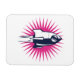Retro Space Rocket with a pink sunburst.