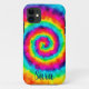 Bright and cheery this retro style spiral rainbow tie dye iPhone case will brighten your day! Personalise it with your desired name or initials.