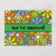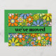 Retro Spring Floral New Address / We've Moved card. Cute, springy, cheerful flowers with a fun vintage aesthetic and a 1960s 1970s vibe, in pretty, bright pastel colours, with green, chartreuse, pink, blue, and orange. Text can be customised and personalised. By Kierkegaard Design Studio.