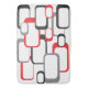 A fun vintage inspired pattern design made up of retro squares in red, black and grey against a white background
