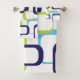 Retro Squares Blue Green White Pattern Bath Towel Set