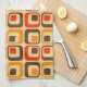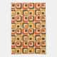 Retro Squares Pattern - Red, Brown & Orange Tea Towel