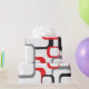 A fun vintage inspired design of retro squares done in grey, red and black on a white background