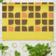 Retro Squares Yellow Brown Custom Family Name Tea Towel