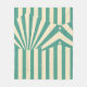 This artwork features a striking retro-inspired design with bold, radiating stripes in a teal and cream colour palette. The central starburst pattern is accented by angular lines and geometric shapes, creating a sense of movement and energy. The worn, distressed texture adds a vintage feel, reminiscent of old posters or signage. Small stars and dots scattered throughout the design enhance its nostalgic and dynamic aesthetic, making it a visually engaging piece.