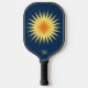 Retro Starburst Flower Monogram Navy Yellow Orange Pickleball Paddle