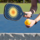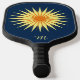 Fun retro starburst flower design with your personalised monogram in script lettering. Simply add your own initial. Leave it in sunshine yellow and orange on navy blue or use the design tool to make it any colour your choose. Hit the court in style with your own customised pickleball paddle! Makes a great gift for your favourite pickleball fanatic.