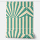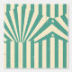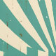 This artwork features a striking retro-inspired design with bold, radiating stripes in a teal and cream colour palette. The central starburst pattern is accented by angular lines and geometric shapes, creating a sense of movement and energy. The worn, distressed texture adds a vintage feel, reminiscent of old posters or signage. Small stars and dots scattered throughout the design enhance its nostalgic and dynamic aesthetic, making it a visually engaging piece.