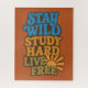 Embrace the free spirit of dorm life with this retro-inspired puzzle featuring the phrase "Stay Wild, Study Hard, Live Free." Set against a vibrant burnt orange backdrop, the bold 1970s-style typography is complemented by earthy tones and a cheerful sunburst motif. Perfect for adding a touch of nostalgia and motivation to your college space. This high-quality puzzle makes for an engaging and stylish dorm room decor piece.