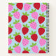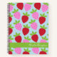 Personalised sketchbook with cute retro aesthetic fruit pattern with strawberries in red, pink, and light blue.