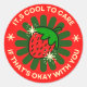 Spread kindness and vintage vibes with this colorful retro badge from Color Crush Lab! Featuring a charming hand-drawn strawberry nestled in a deep green floral burst, this design carries the empowering message: "It's Cool to Care, If That's Okay With You." With its bold red background and 70s-inspired typography, this piece is perfect for anyone who believes in empathy, kindness, and standing up for what matters. Whether it's a sticker for a laptop or a bold graphic tee, it's a sweet reminder that being caring is always in style.