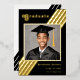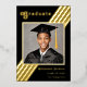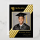 Celebrate your son’s high school, college, or university graduation in style with this bold and stylish retro photo black and gold foil graduation announcement card. Featuring a bold and striking combination of modern black and gold foil stripes, this card exudes sophistication and excitement for his big achievement. The front showcases a photo template with a gold foil frame and three eye-catching gold foil stripes, while the back highlights graduation details in sleek, modern black groovy typography with a matching black frame and stripes for a cohesive look. Designed by artist Catherine Sweetman, this grad announcement card is the perfect way to share his special moment with friends and family. The easy-to-use photo template allows you to personalise it effortlessly, making it an unforgettable keepsake for this milestone occasion.