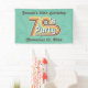 70's Party Banner featuring a retro style typography of "70's Party''. Designs include seventies inspired elements of blue, orange, mustard yellow, dark red and brown, stripes, and vintage texture. Includes a template to personally customise with event and date.