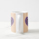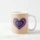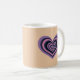 A stylish ceramic mug featuring a bold retro striped heart design in purple set against a beige background. This minimalist yet expressive design adds a warm, artistic touch to your daily coffee or tea ritual.