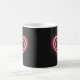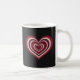 A stylish ceramic mug featuring a bold retro striped heart design in red set against a black background. This minimalist yet expressive design adds a warm, artistic touch to your daily coffee or tea ritual.