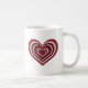 A stylish ceramic mug featuring a bold retro striped heart design in red set against a white background. This minimalist yet expressive design adds a warm, artistic touch to your daily coffee or tea ritual.