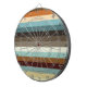 This design features horizontal stripes in various vintage colours, such as brown, orange, beige, blue, black, grey and white. It really conjures up the style of the mid 20th century.
