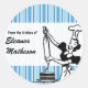 A vintage illustration of a baker against a blue tonal striped background form the visual base for this cute sticker. Use the "From the Kitchen of" expression or make it your own and add your own (or someone else's) name. Write in your dish name below. Available in alternate designs and colour combinations. Contact me through this store if you're interested in a different colour combination or background.