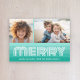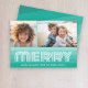Retro Stripes in Aquamarine Blue - Merry 2 Photo Holiday Card