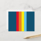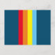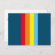 A navy blue background... with red, orange, yellow and light blue stripes... inspired by vintage styles... Back reads... "Best wishes for a most memorable day!"...