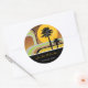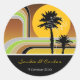 Retro Stripes Sunset Tropical Palm Trees Wedding Classic Round Sticker