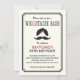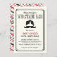 Fun wig and moustache bash birthday party invitation featuring a black frame with customisable black and pale red text, and a funny wig and handlebar moustache. Cream background. Choose between cream or stripes on the back. Fun retro design for birthday parties. For custom requests or help with customising please use the store contact link above.