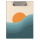 Abstract colourful retro style seascape illustration with blue sea waves and sun decoration at sunset for everybody who likes nature and waiting for summer adventures.