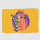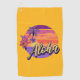 Grunge retro summer illustration with "Aloha" text design and palm tree, tropical flowers, sun, sea and rainbow decoration for summer lovers