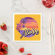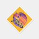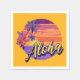 Grunge retro summer illustration with "Aloha" text design and palm tree, tropical flowers, sun, sea and rainbow decoration for summer lovers