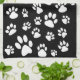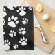 Retro-Style Black and White Scattered Paw Prints Tea Towel