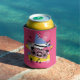 Colourful retro style boombox design with geometric shapes, triangles, rectangles and striped rounded shapes