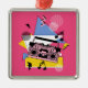 Colourful retro style boombox design with geometric shapes, triangles, rectangles and striped rounded shapes