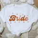 It is the shirt of the bridal season with retro style lettering in pastel brown.
