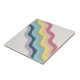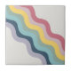Abstract illustration of retro style colourful diagonal waves design in yellow, purple, blue, pink, turquoise and navy blue colours on pastel grey background for everybody who likes retro style design and retro style colour palette.
