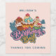 Bottle labels with a row of delicious looking cupcakes with swirls and cherries and yummy frosting. Illustrated in a classic retro style. Colours include retro green, red, blue and cream. Birthday bash written in a fancy typography font. Personalise with a name.