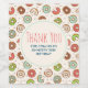Party thank you wine bottle labels. featuring a cute pattern with doughnuts tumbling all around. Pink, green, brown and cream colours really give this design a cool retro feel.