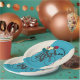 Retro-style cycling birthday paper plate with customisable text.