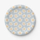 Retro style daisies in bloom on blue background paper plate
