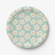 Retro style daisies in bloom on green background paper plate