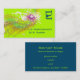 Retro style business card for dj's, musicians and other music related businesses. This exciting musical themed image is a funky retro design of a pastel coloured rainbow with dark multicolored music notes on pieces of sheet music exploding outward. Butterflies and paint splatters seem to burst forth from the centre. The background is an intense show stopping lime green.