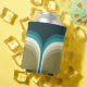 Retro style double arches geometrical pattern illustration with beige, green, blue, navy blue and turquoise stripes decoration