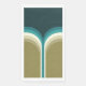 Retro style double arches geometrical pattern illustration with beige, green, blue, navy blue and turquoise stripes decoration