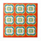 A fabulous pattern in a retro style funky repeat pattern with bright colours of green, teal blue, white and tangerine orange, a really fresh modern look.