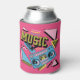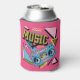 Colourful retro style boombox design with "Music" text decoration, geometric shapes, triangles, rectangles and striped rounded shapes