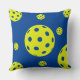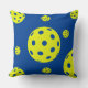 Retro Style Neon Blue Themed Pickleball Birthday Cushion